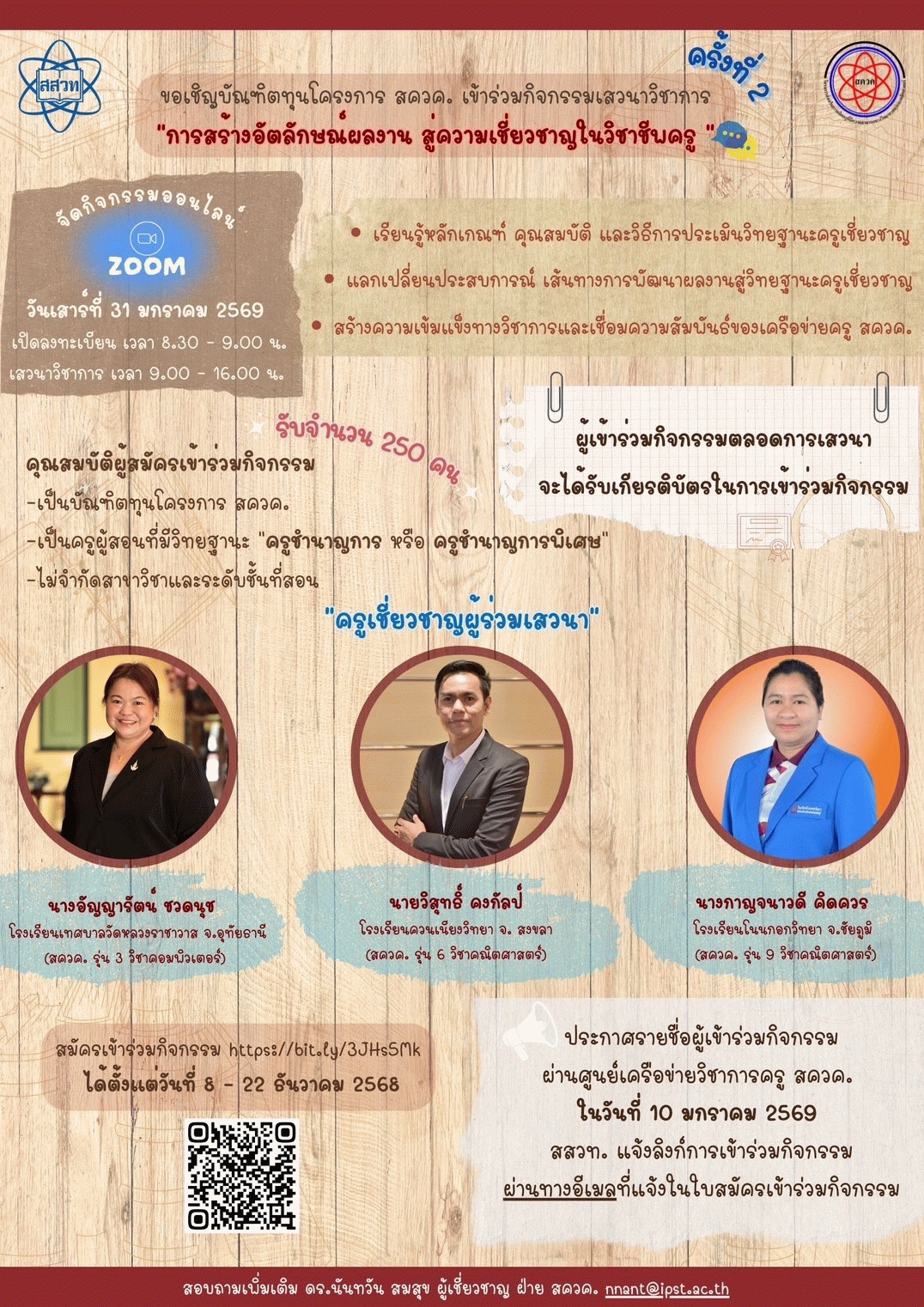 ขอเชิญบัณฑิตทุนโครงการ สควค. เข้าร่วมกิจกรรมเสวนาวิชาการ “การสร้างอัตลักษ์ผลงาน สู่ความเชี่ยวชาญ ในวิชาชีพครู”แบบออนไลน์